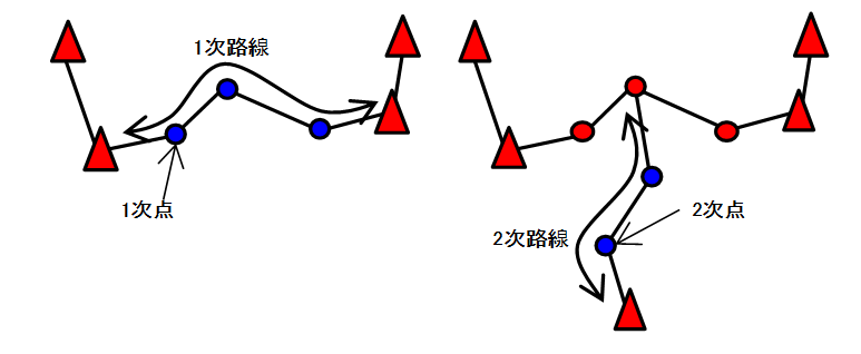 1次点を既知点として観測を行った場合、その点は2次点・2次路線となるようです。